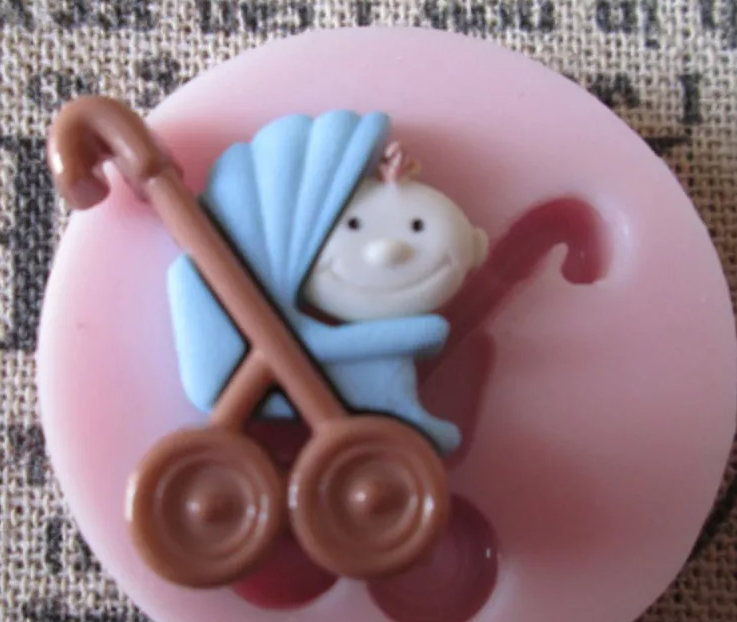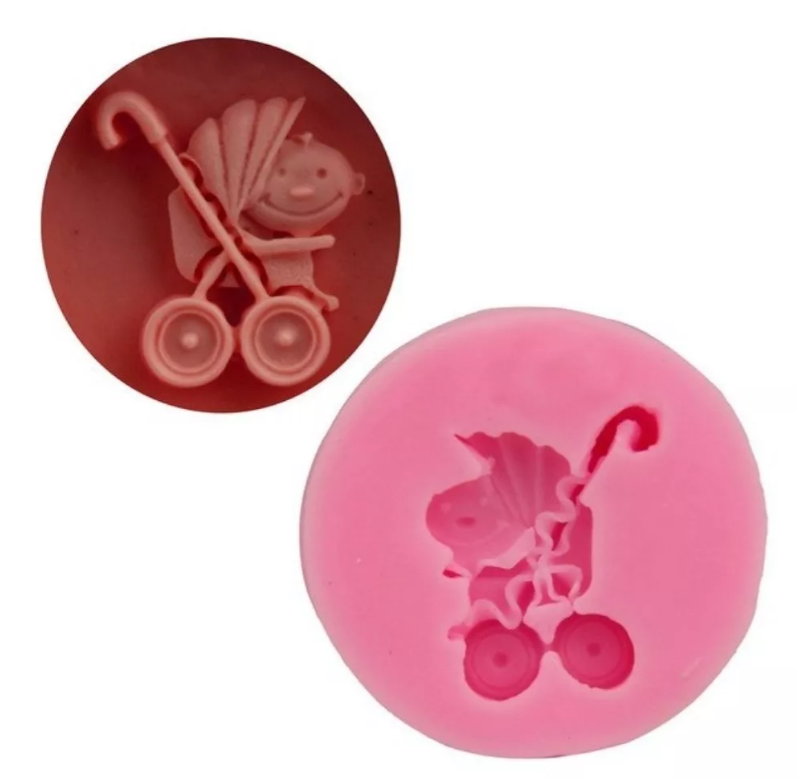 molde de silicon diseño de mini carreola especial para fiestas del bebe se utiliza en silicon pasta francesa y fondant