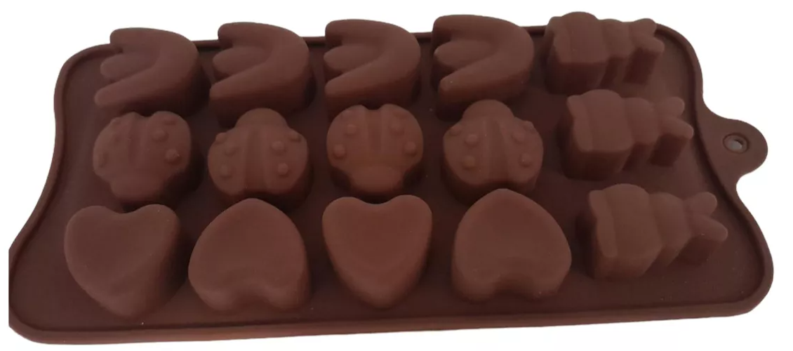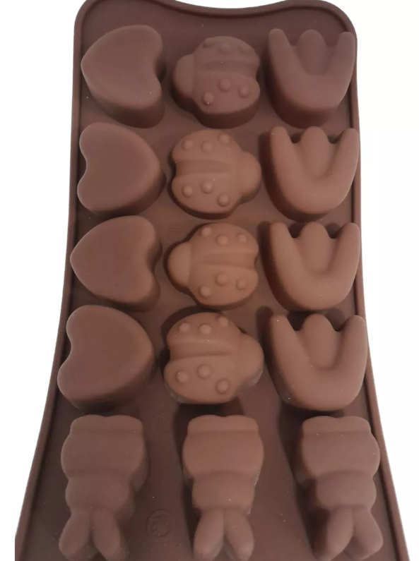 molde silicon especial para figuras de chocolate Temperatura : -40 grados a +230 grados 15 cavidades figuras de corazón flor conejo y catarina