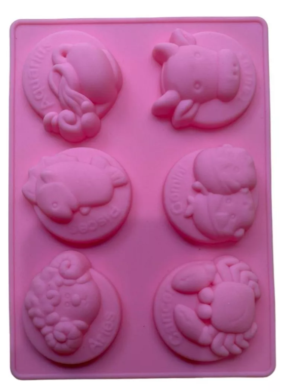molde se silicón diseño de 6 símbolos del zodiaco color: rosa molde ideal para trabajos de manualidades, decoración y jabones fácil de usar y desmoldar respetuoso con el medio ambiente