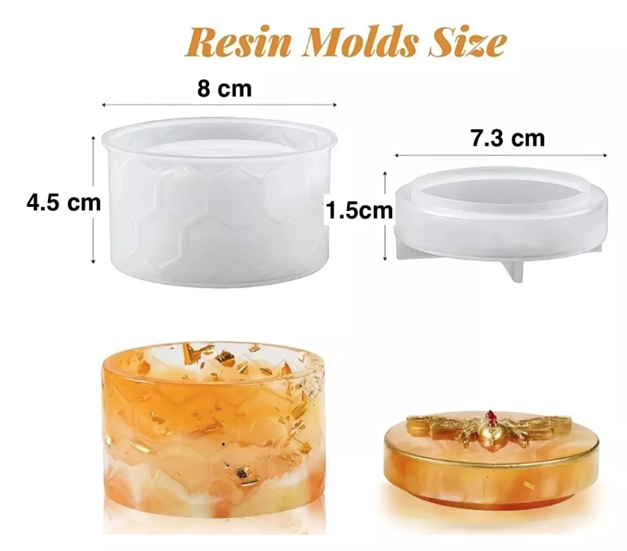 Molde Silicon Caja Cajita Joyero Diseño Panal Abeja Tapa* cantidad