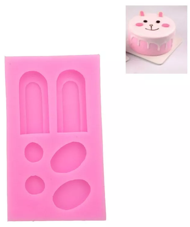 Molde de silicona con forma de orejas y ojo de conejo para decoración de pasteles