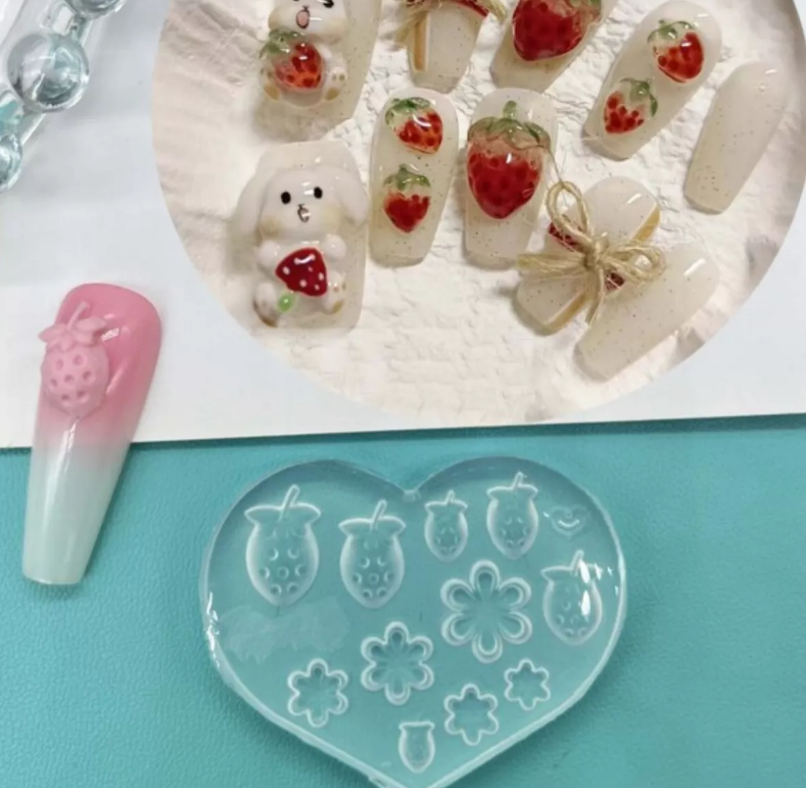 Molde Silicon De Mini Fresa Y Mini Flor Uñas*