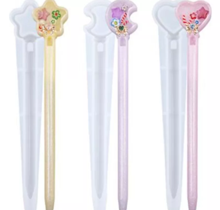 Molde de resina para bolígrafo tipo Kawaii molde de silicona con forma de luna, corazón y estrella molde para fabricación de manualidades ….. no incluye la tinta ……..