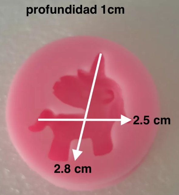 medidas de la cavidad del molde : de largo mide 2.8 cm, con un ancho de 2.5 cm y una profundidad de 1 cm