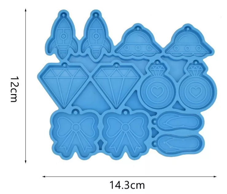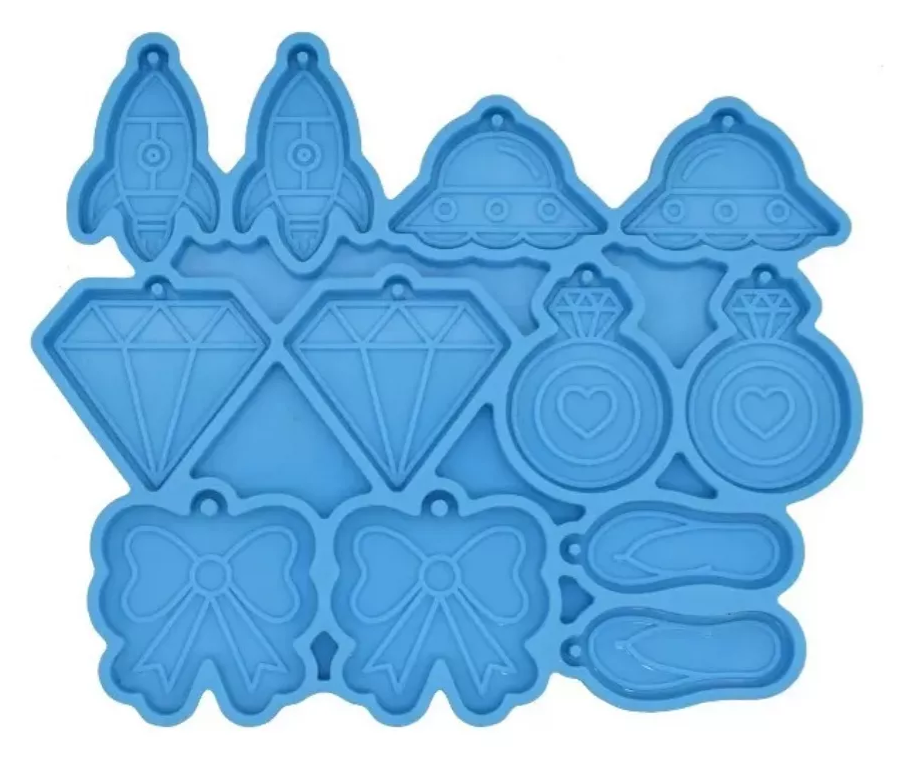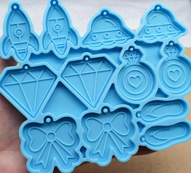 molde de silicon con variedad de dijes especial para aretes nave espacial, cohete, diamante anillo moño y sandalias
